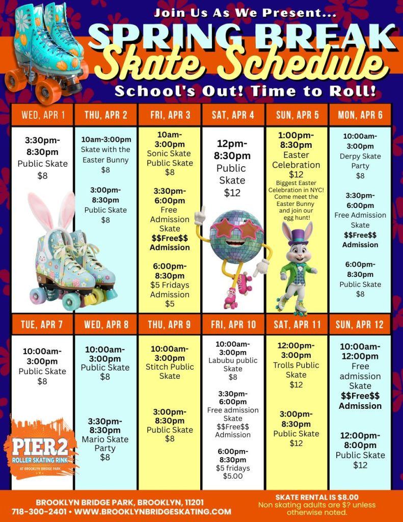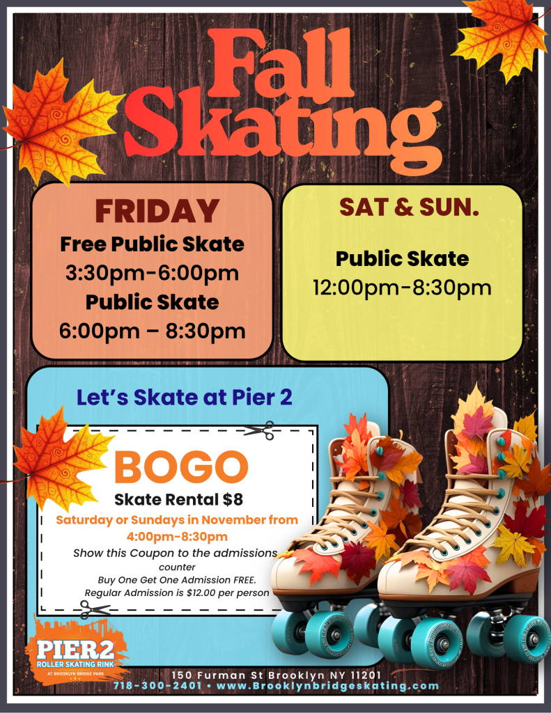It’s friends and family fun time at Pier 2 Roller Rink at Brooklyn Bridge Park!