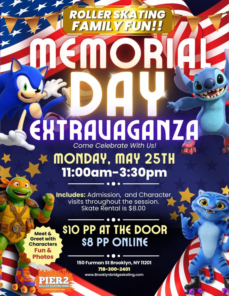 Kick off Memorial Day with the ultimate family celebration β skating, characters, music, and nonstop FUN at the iconic Pier 2 Roller Rink!